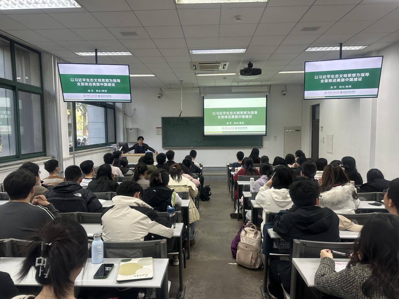 11月20日下午,黄色网 党校第2期积极分子培训班开展了第三次集中学习。学院院长、党委副书记庞军教授以《以习近平生态文明思想为指导 全面推进美丽中国建设》为题,围绕习近平生态文明思想的提出及确立、习近平生态文明思想的科学内涵、“两山”理念的发展历程、“两山”理念的核心要义、生态文明五大体系建设、美丽中国建设目标、如何建设美丽中国带领学员们进行了系统学习。