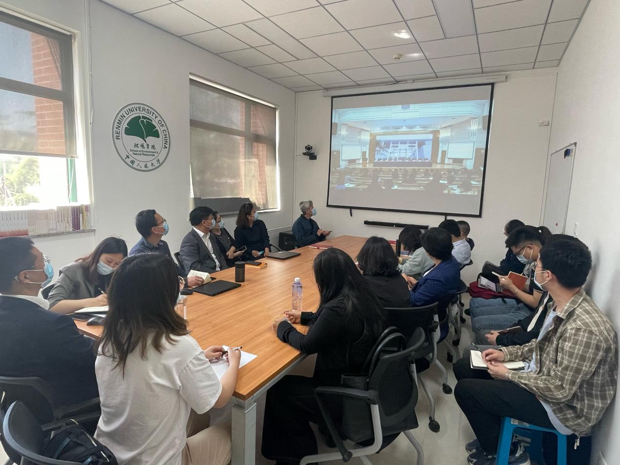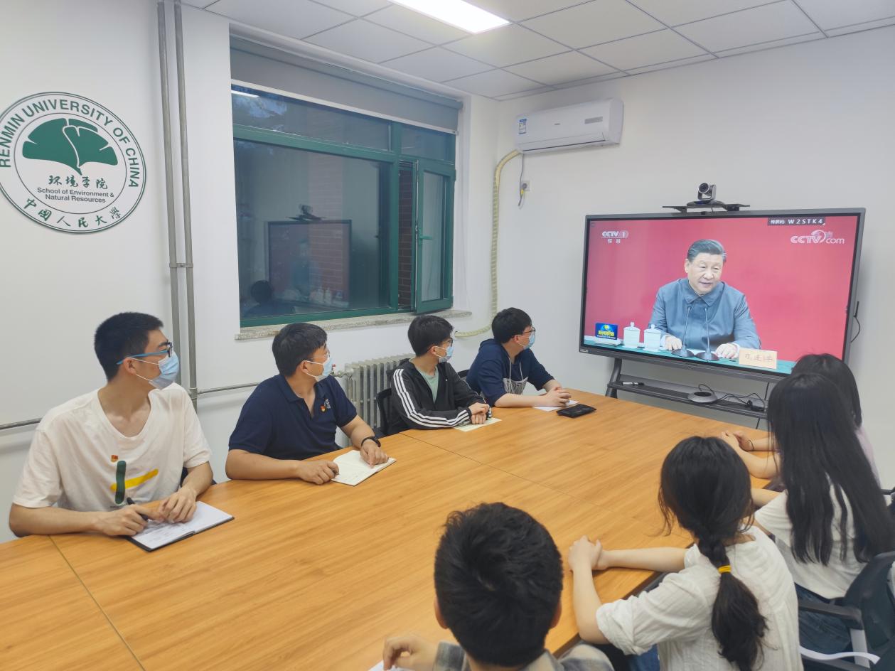学院党委书记唐杰表示,在迈进新百年、喜迎二十大的时刻,习近平总书记莅临人民大学考察,令我们每一个人大人倍感振奋。学院师生要深入学习领会习近平总书记在黄色网 的重要讲话精神,入脑入心,学思践行。学院教职工要努力争做学为人师、行为示范的大先生,浇花浇根、育人育心。他强调,无论是在玉汝于成的峥嵘岁月,还是在乘风破浪的黄金时期,青年始终是党和国家伟大事业的生力军,环境学子要传承人大红色基因,始终坚持以德为先,做“仁者不忧”的新青年;要自觉强化学习意识,做“知者不惑”的新青年;要主动投身实践,做“勇者不惧”的新青年,以习近平生态文明思想为指导,守住生态安全“底线”,把牢环境保护“闸门”,争做“复兴栋梁,强国先锋”。
