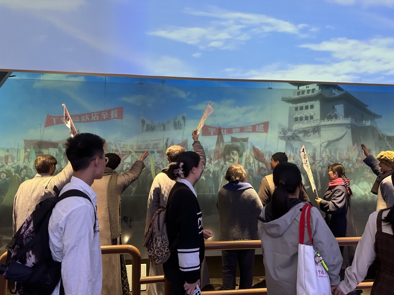 同学们手持鲜艳的国旗,怀着崇敬之情,跟随馆内志愿讲解员的步伐踏入馆内。馆内一份份珍贵的文件原本、一件件承载着历史记忆的文物,如同一座座历史的丰碑,将同学们带回到当年从解放战争到进驻香山、从进京赶考到开国大典的峥嵘岁月。同学们驻足凝视,用心感受着老一辈革命家的伟大情怀与战略定力,深刻领悟中国共产党人洞悉历史规律、把握历史主动的清醒与坚定。