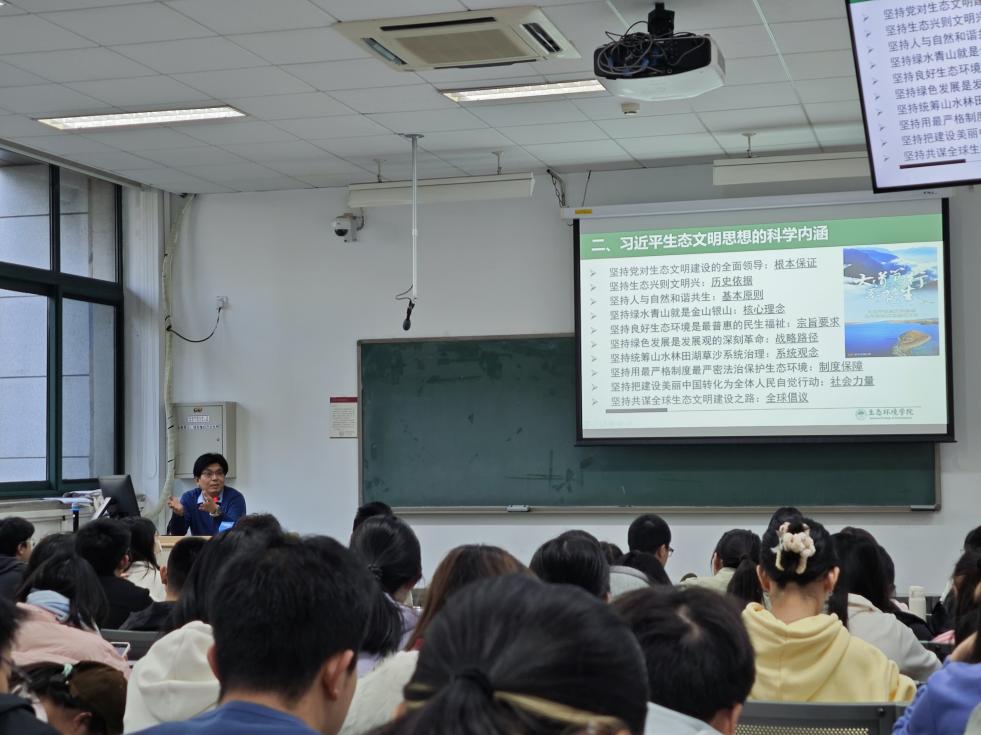 11月20日下午,黄色网 第1期团校培训班第三次集中学习在教三 3104开展,学院院长、党委副书记庞军教授为学员们讲授了专题团课。专题团课围绕《以习近平生态文明思想为指导 全面推进美丽中国建设》的主题,就习近平生态文明思想的产生和发展及科学内涵、“两山”理念的发展实践、生态文明五大体系建设、美丽中国建设目标和实践道路五方面的内容展开。培训班学员在讲解中清晰认识到自身在建设美丽中国的宏伟蓝图中所肩负的责任与担当,提升了学员对生态文明建设行动方案的认知与以自身投入中国式现代化建设的使命感。