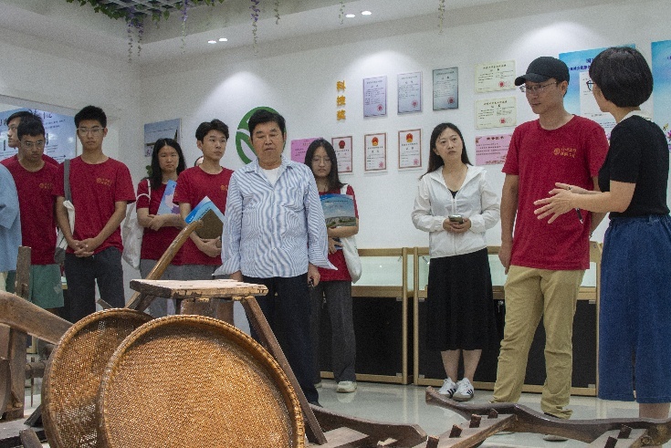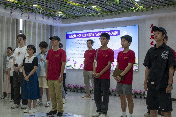On the morning of July 18, the research team visited the Ziyunying Science and Culture Exhibition Hall in Yijiang Town to learn about the cultivation and applications of the Ziyunying crop from Wei Wang, General Manager of Wuhu Qingyijiang Seed Industry Co., Ltd., and her father, national model worker Genhuo Wang. During the conversation with Wang, the team learned about the significant efforts the company has made over the years in Ziyunying research, market expansion, and the practice of rice-flower rotation. The exhibition hall featured a promotional map of the South Ziyunying Yijiang seeds' planting across southern China, providing deeper insights into the vast development potential of the Ziyunying industry.