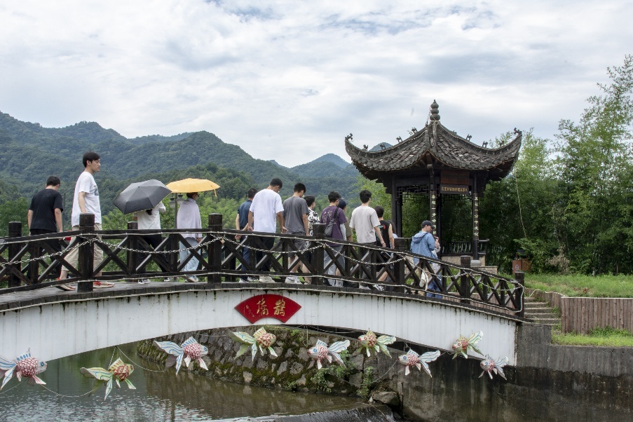 On July 16, the research team visited Aili Village in Yandun Town to examine the ecological cultural tourism model of beautiful countryside. The village, located in the southernmost part of Wuhu City and known as "the southern gate of Wuhu," left a striking first impression with its picturesque scenery and mist-shrouded landscapes. With a forest coverage of 87%, Aili Village boasts significant natural advantages that enhance its ecological appeal.