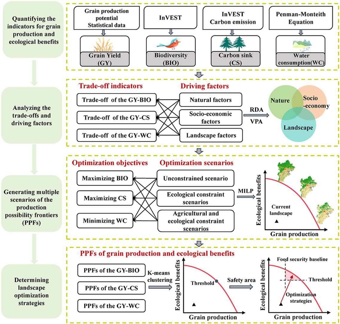 Landscape pattern optimization can mitigate the trade-offs between grain production and ecological benefits.