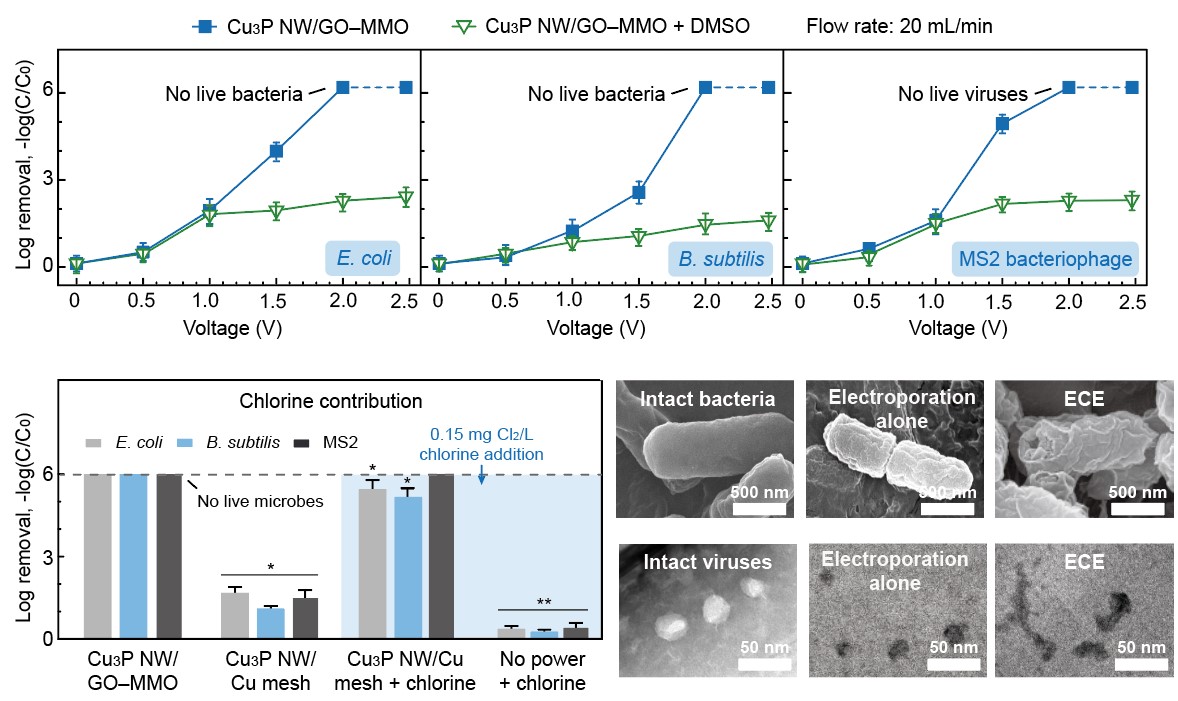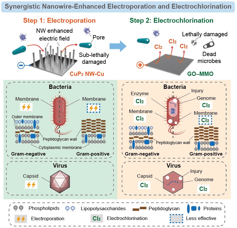 【论文名称】Synergistic Nanowire-Enhanced Electroporation and Electrochlorination for Highly Efficient Water Disinfection