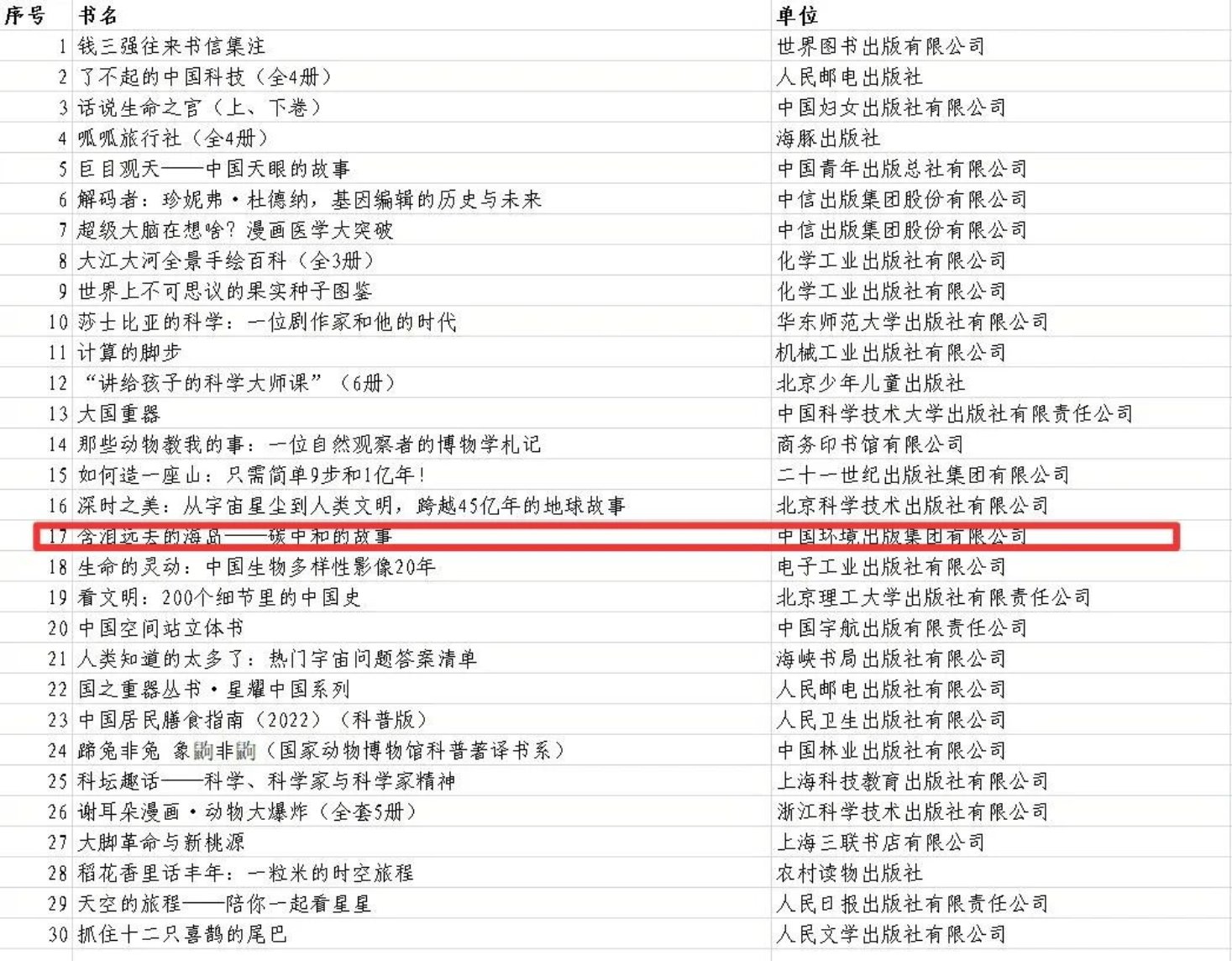 12月13日,北京市科协发布“2023首都科普好书”推荐书目,30部科普力作入选。黄色网 蓝虹教授著的《含泪远去的海岛——碳中和的故事》(中国环境出版集团出版)上榜。