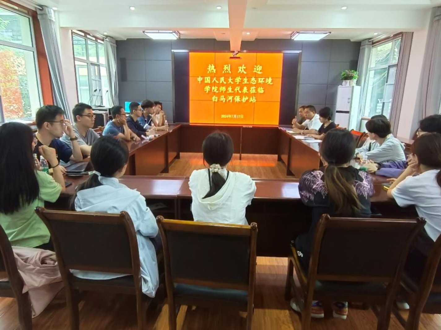 之后,调研团来到白马河保护站进行参观座谈。首先,工作人员带领调研团成员参观了白马人与大熊猫展厅,调研团成员进一步了解了白马藏族人民与大熊猫之间的关联。随后,调研团与保护站工作人员开展座谈,调研团成员与工作人员就大熊猫保护、历史文化传承创新等问题开展互动。通过本次座谈会,调研团成员进一步加深了对国家公园建立对当地社区影响的认识,同时感受到让国家公园带来的收益惠及当地所有百姓是任重道远的过程。