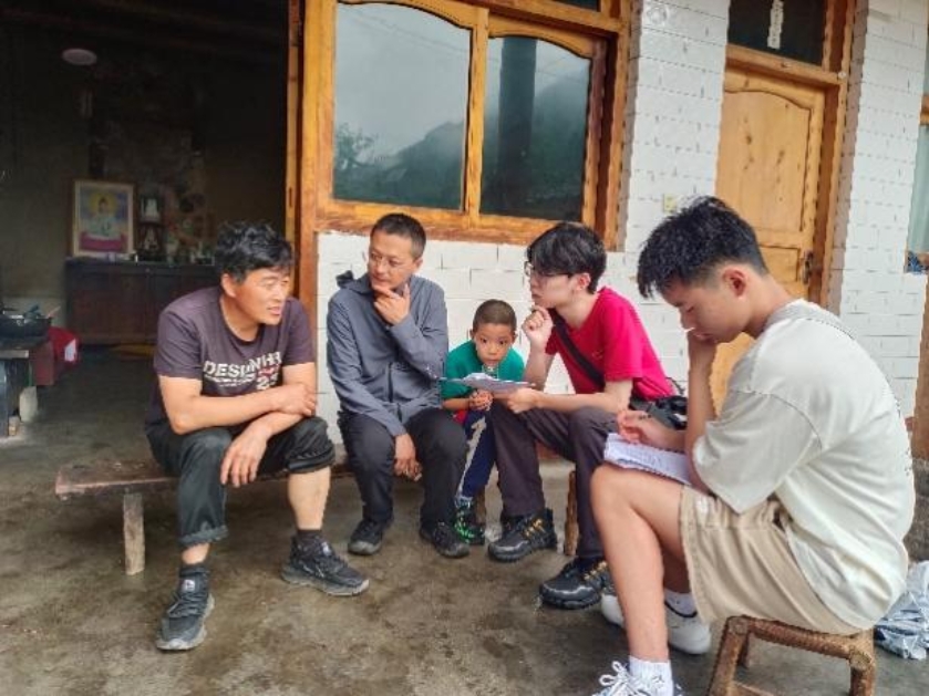 7月17日上午,调研团来到白马河保护站辖区开展调研工作。调研团成员两人一组,在本地向导的带领下,走进村民的家中,开始调查工作。调研中师生了解到,尽管在物质生活方面有所欠缺,村民对落实国家政策,开展生态环境保护工作极其认可和重视。在村民们的积极配合下,调研团师生收集到大量重要信息和一手数据。