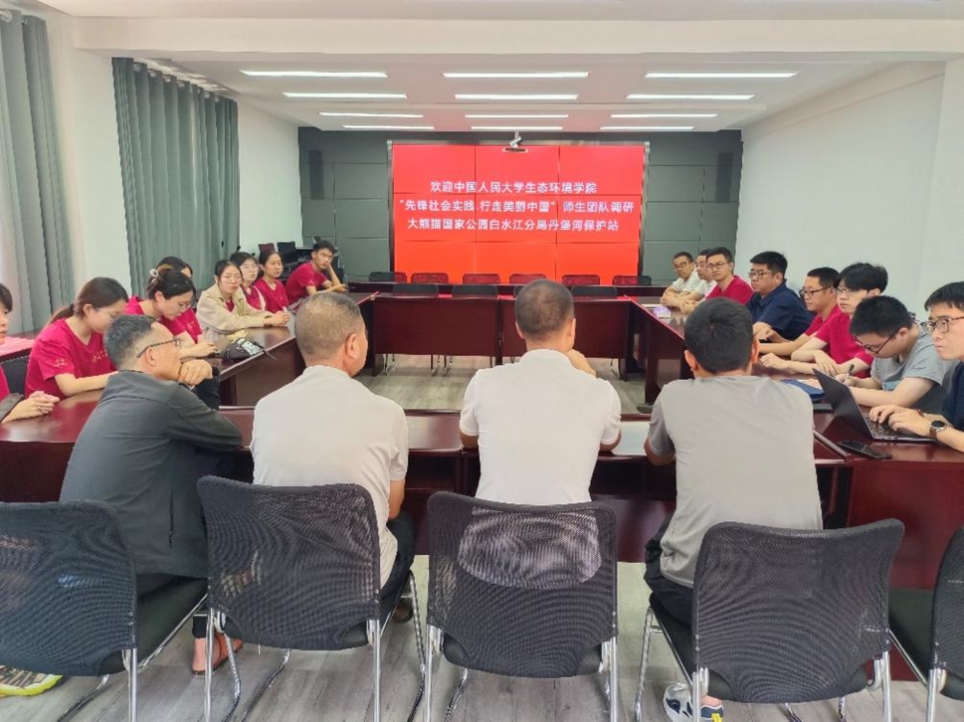 首先,保护站工作人员向调研团师生简单介绍了巡护工作、森防工作、社区工作和监测工作等方面的情况,帮助调研团师生加深对保护站工作的认识。随后,调研团队与保护站工作人员开展座谈交流。工作人员向调研团师生进一步讲解丹堡河辖区的国家公园基本建设状况、珍稀动植物保护情况、森林防火工作和松材线虫病调查工作的开展情况,当地野生动物肇事补偿机制,以及保护与发展之间的主要矛盾问题等。双方就相关问题开展了详实的研讨交流。调研团师生不仅进一步了解了大熊猫等野生动物的生活习性,也对国家公园基层建设问题有了更深的思考。
