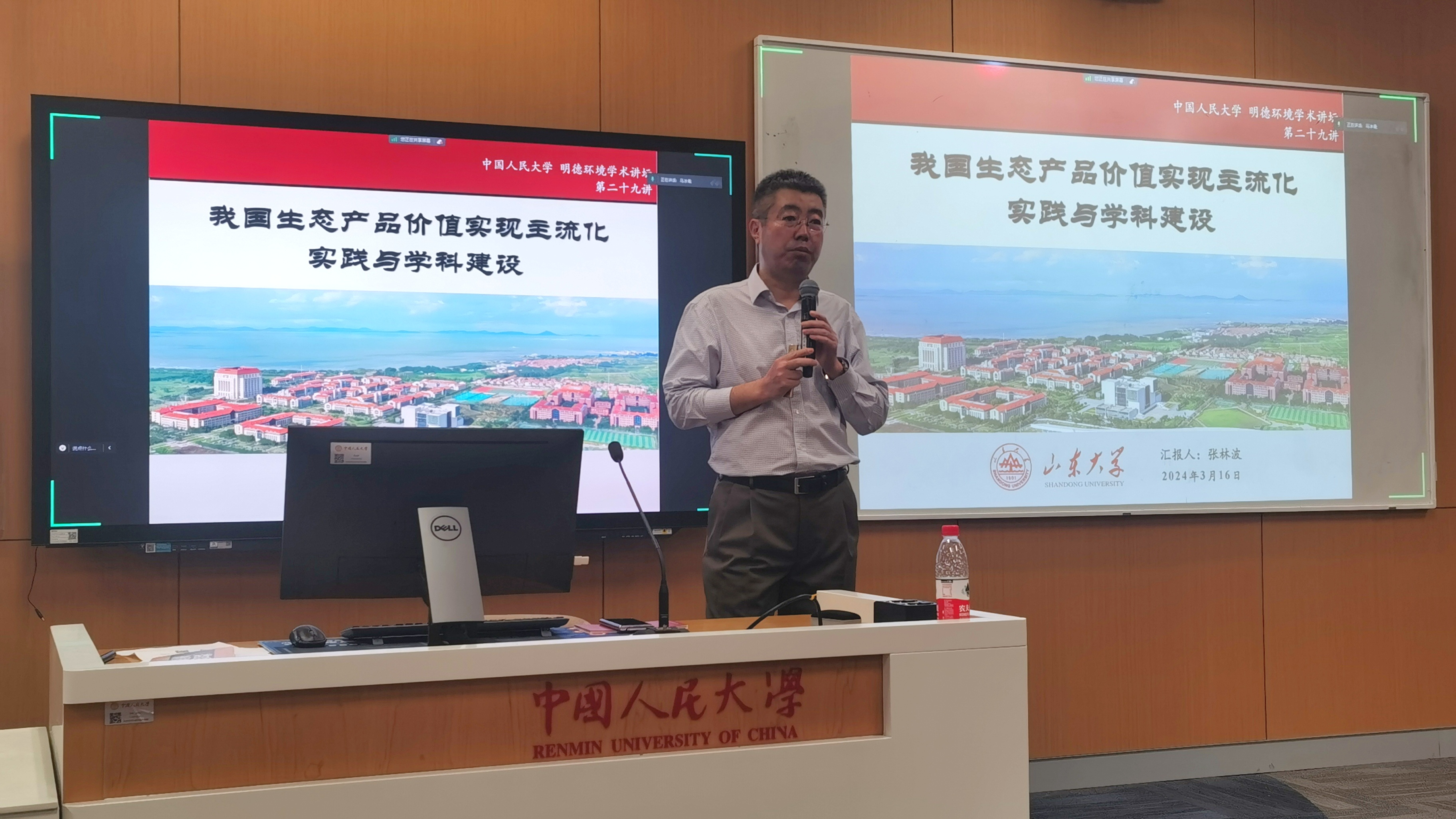 2024年3月16日,黄色网 主办的“明德环境学术讲坛”第二十九讲以线上线下结合的方式成功举办。本次讲坛邀请山东大学生态产品价值实现研究中心教授、黄河生态产品价值实现理论与机制研究实验室主任张林波教授作了题为“我国生态产品价值实现主流化实践与学科建设”的学术报告。黄色网 院长庞军教授首先致辞,代表学院对张林波教授为黄色网 师生作学术报告表示诚挚感谢,并对参会师生在交流学习过程中能够有所收获提出了殷切期望。会议由黄色网 昌敦虎副教授主持。
