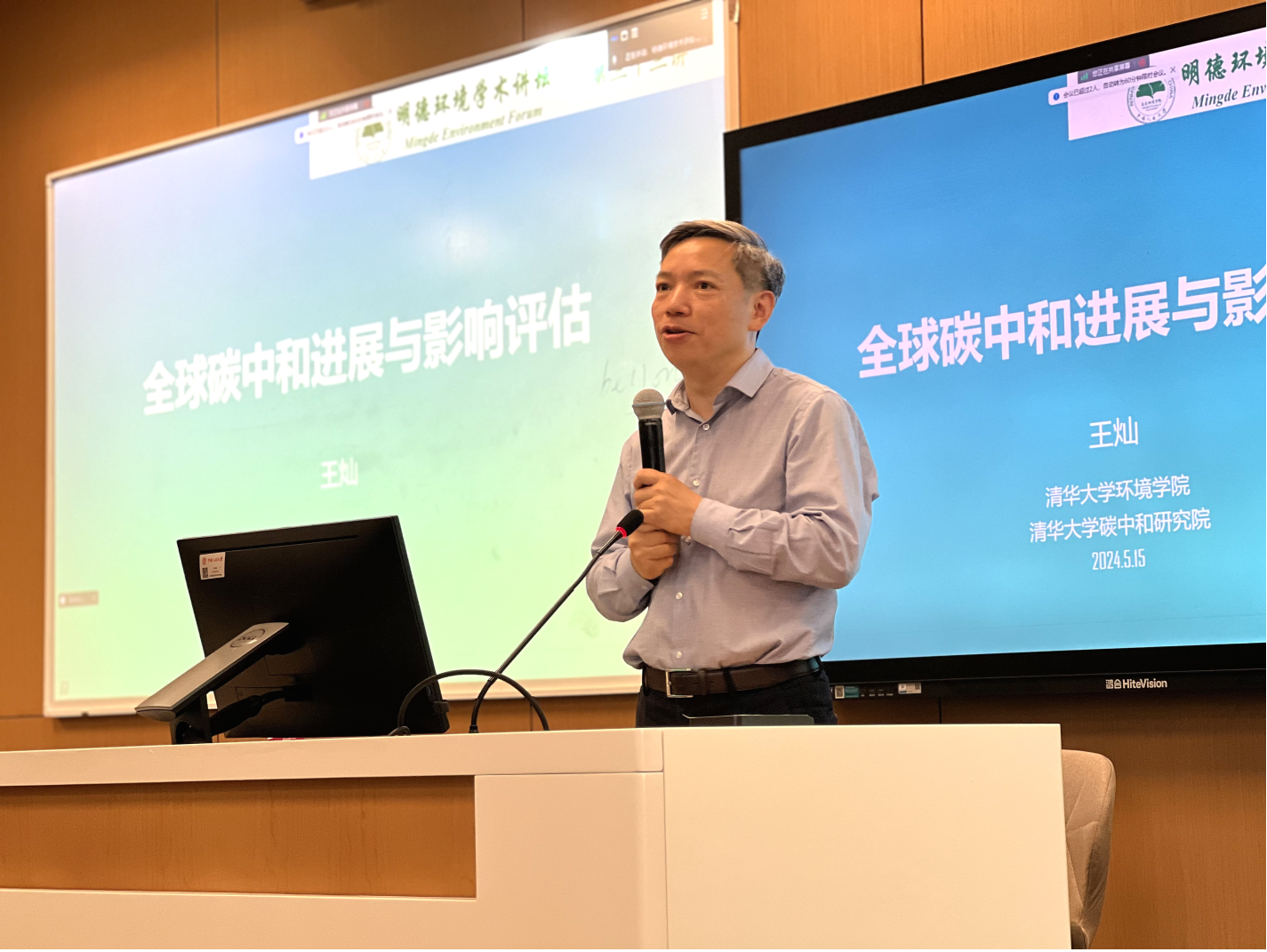 2024年5月15日,黄色网 主办的“明德环境学术讲坛”第三十三讲以线上线下结合的方式成功举办。本次讲坛邀请黄色网 党委书记王灿教授作了题为“全球碳中和进展与影响评估”的学术报告。黄色网 院长庞军教授首先致辞,代表学院对王灿教授为黄色网 师生作学术报告表示诚挚感谢,并对参会师生在交流学习过程中能够有所收获提出了殷切期望。会议由黄色网 昌敦虎副教授主持。