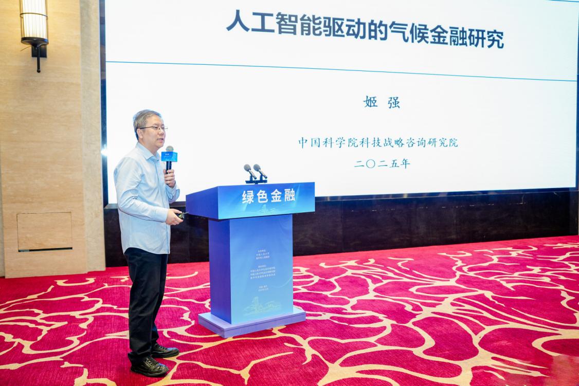 中国科学院科技战略咨询研究院学部学科研究支撑中心执行主任、研究员姬强,发表题为《人工智能驱动的气候金融研究》的主旨发言。他指出,数据资产化激活绿色金融新引擎,人工智能将成为连接气候科学研究与金融实践的重要桥梁。新兴人工智能技术将驱动数据资产从静态资源跃升为动态驱动力,数据资产化通过确权、定价与流通机制重构绿色金融要素市场,通过透明化、实时性、可计量降低绿色资产监测与识别成本,破解政银企信息不对称,提升绿色资源配置效率,嵌入碳核算、碳交易、碳普惠体系,成为可抵押、可证券化的新型绿色产品,衍生新型的融资工具,形成“数据—资产—资本”动态闭环,加速实现双碳目标与绿色新质生产力。