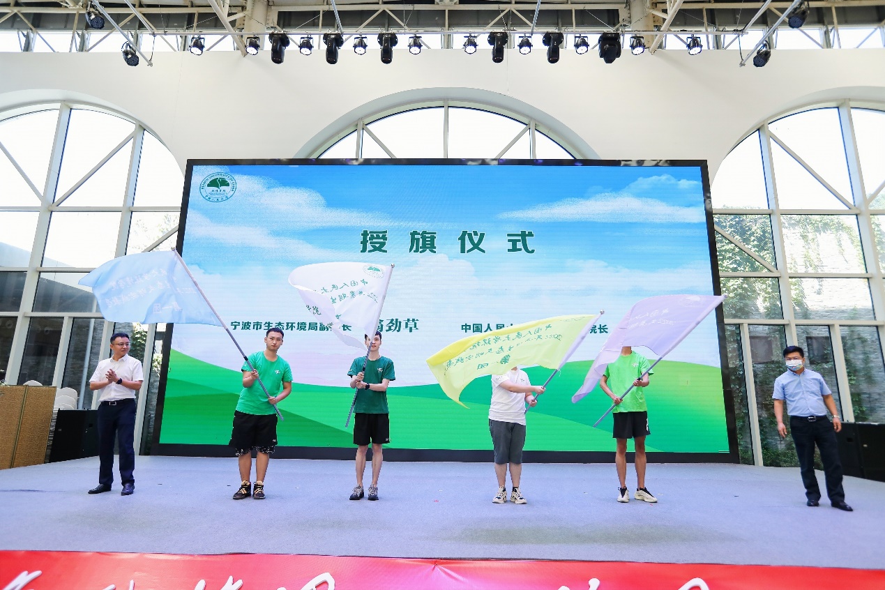 此基地的设立,将重点开展“两山”转化机制、生物多样性保护与污染治理、公众参与碳减排和共同富裕、生态产品价值实现机制等4个方面的生态文明跨学科实践教学。宁波市生态环境局副局长翁劲草和黄色网 环境学院副院长刘国华为黄色网 环境学院2022年暑期生态文明实践教学浙江行的4支实践教学团队授旗。