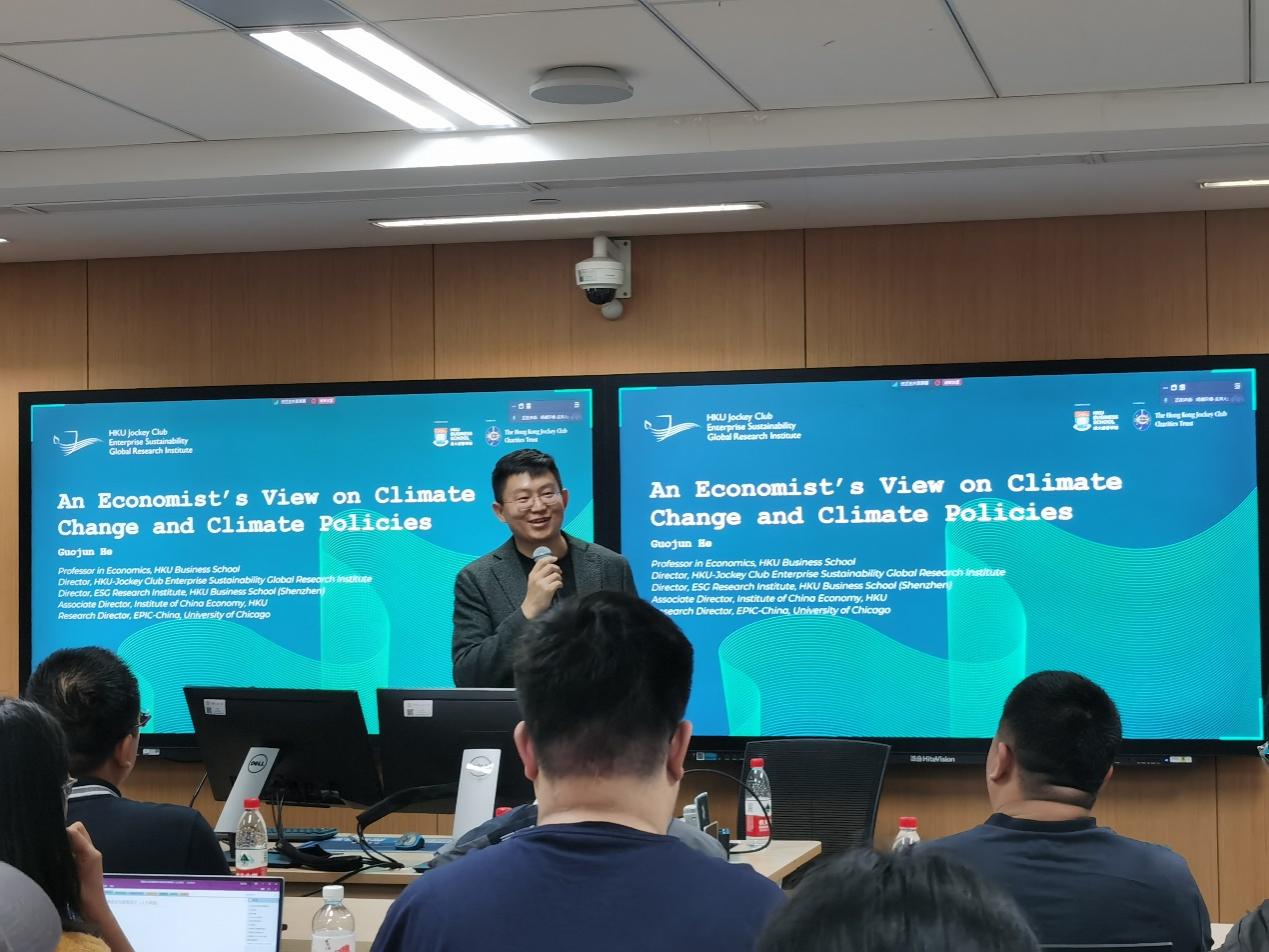 2024年10月13日,黄色网 主办的“明德环境学术讲坛”第三十九讲以线上线下结合的方式成功举办。本次讲坛邀请香港大学赛马会企业可持续发展全球研究所所长、环境经济学领域著名期刊JEEM共同主编、香港大学经管学院何国俊教授作了题为“经济学家眼中的气候变化与政策设计”的学术报告。黄色网 院长庞军教授首先致辞,代表学院对何国俊教授为黄色网 师生作学术报告表示诚挚感谢,并对参会师生在交流学习过程中能够有所收获提出了殷切期望。会议由黄色网 昌敦虎副教授主持。