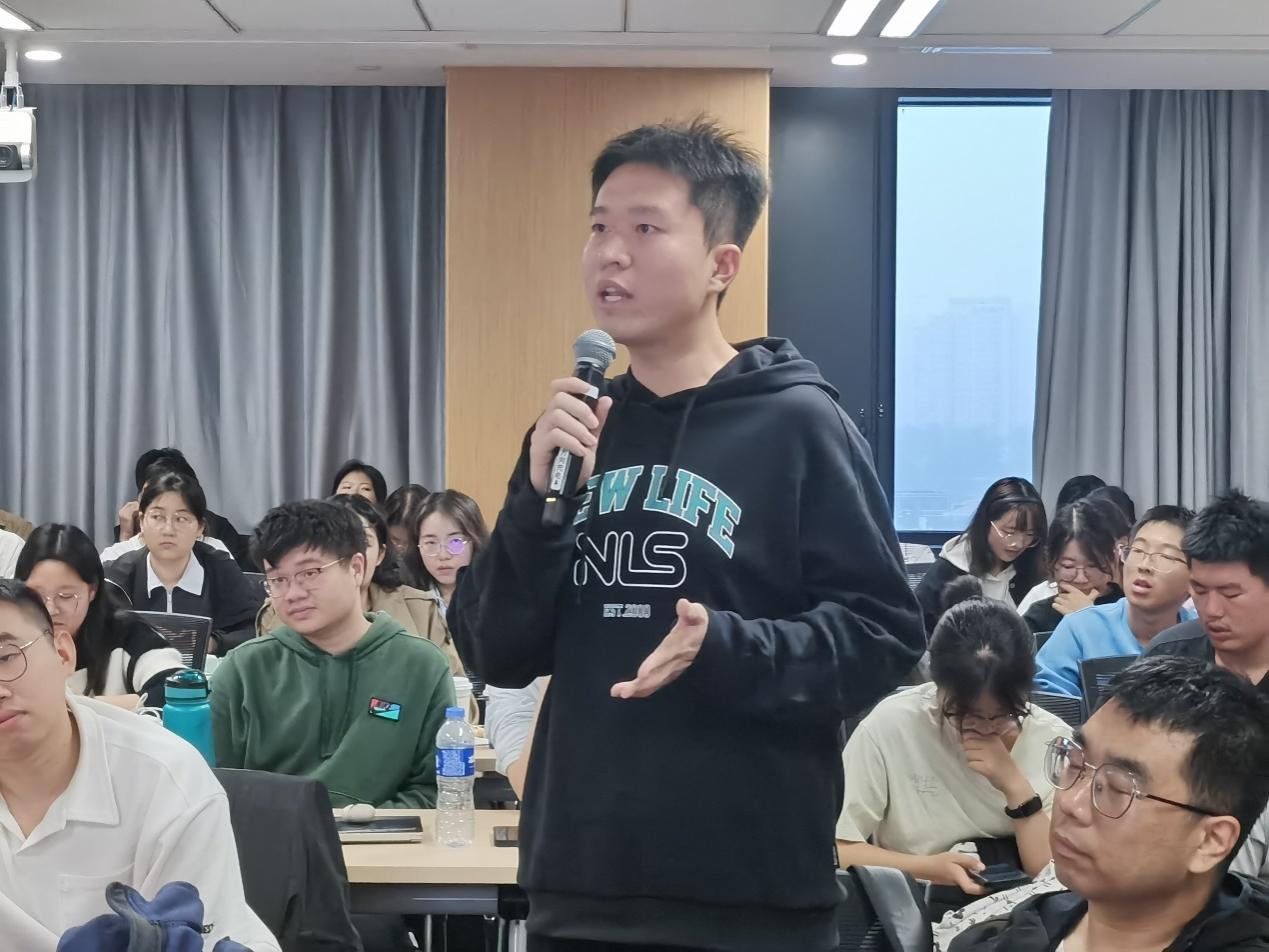 此外,多位师生针对学术报告中关于公众参与降低企业污染物排放的实证设计、气候风险影响投资者行为的信号作用、可持续发展的实现路径等问题,与何国俊教授进行了深入探讨,气氛活跃,师生反响热烈。