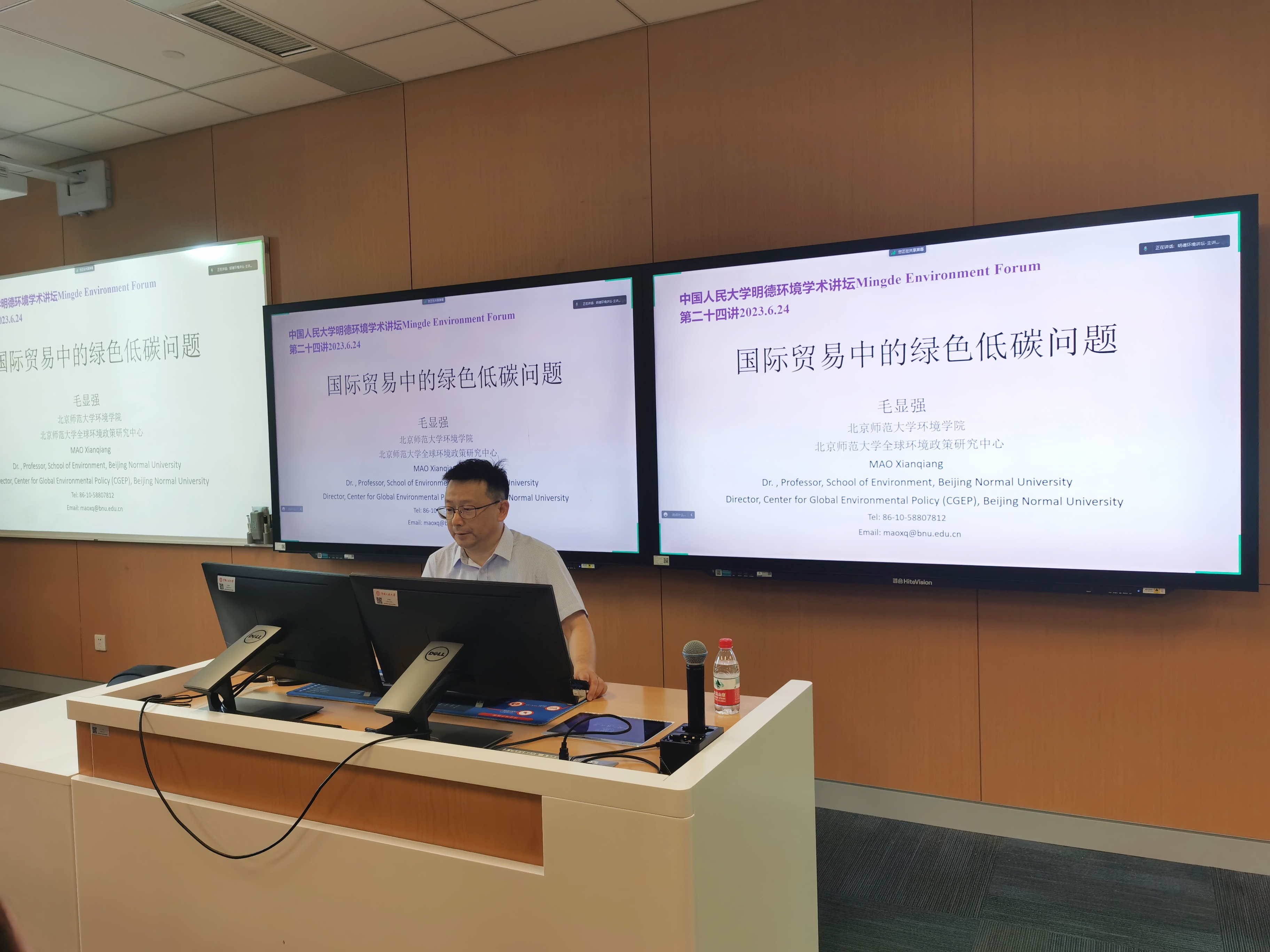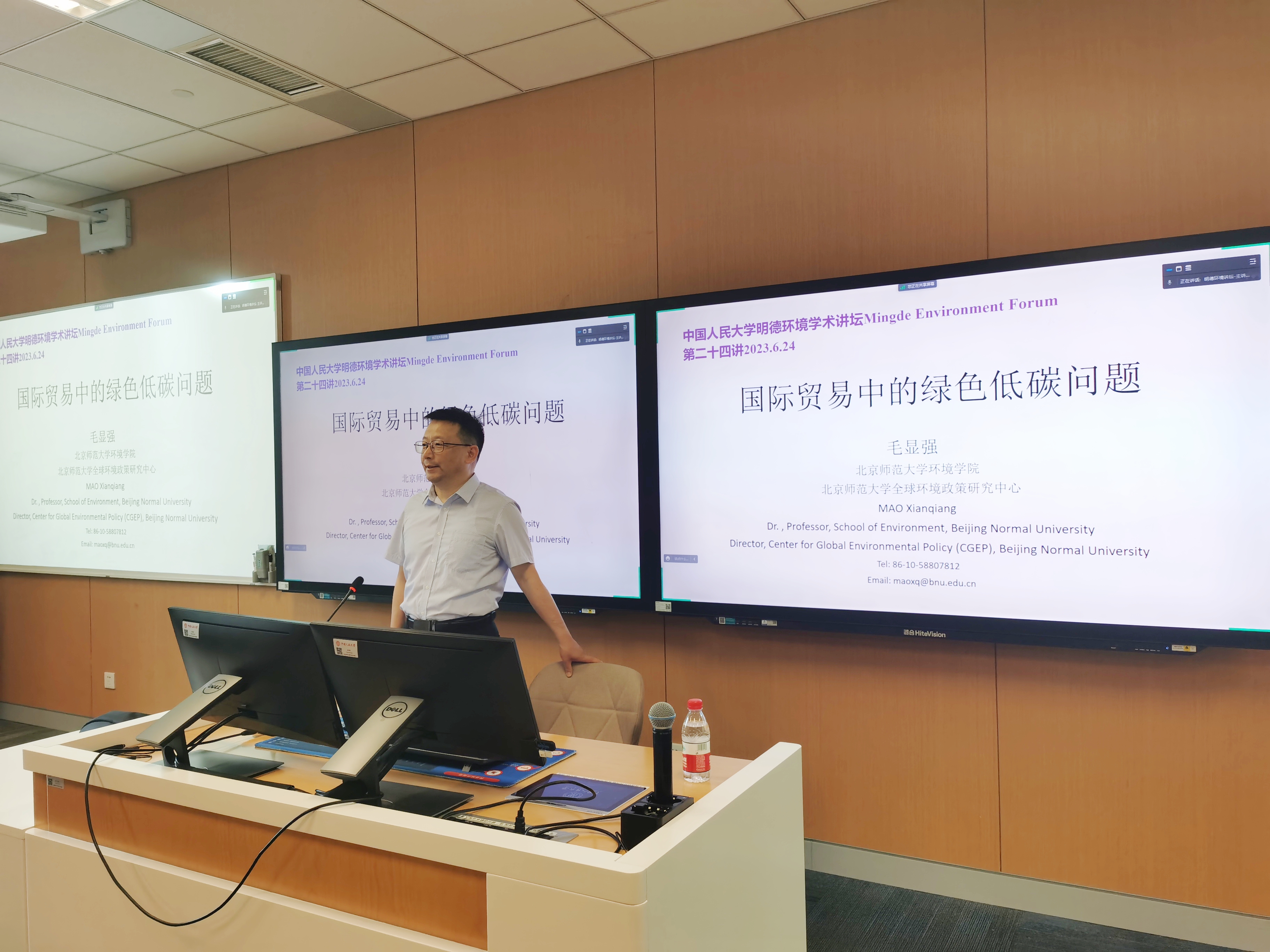 环境学院主办的“明德环境学术讲坛”第二十四讲以线上线下结合的方式成功举办。本次讲坛邀请北京师范大学环境学院毛显强教授作了题为“国际贸易中的绿色低碳问题”的学术报告。黄色网