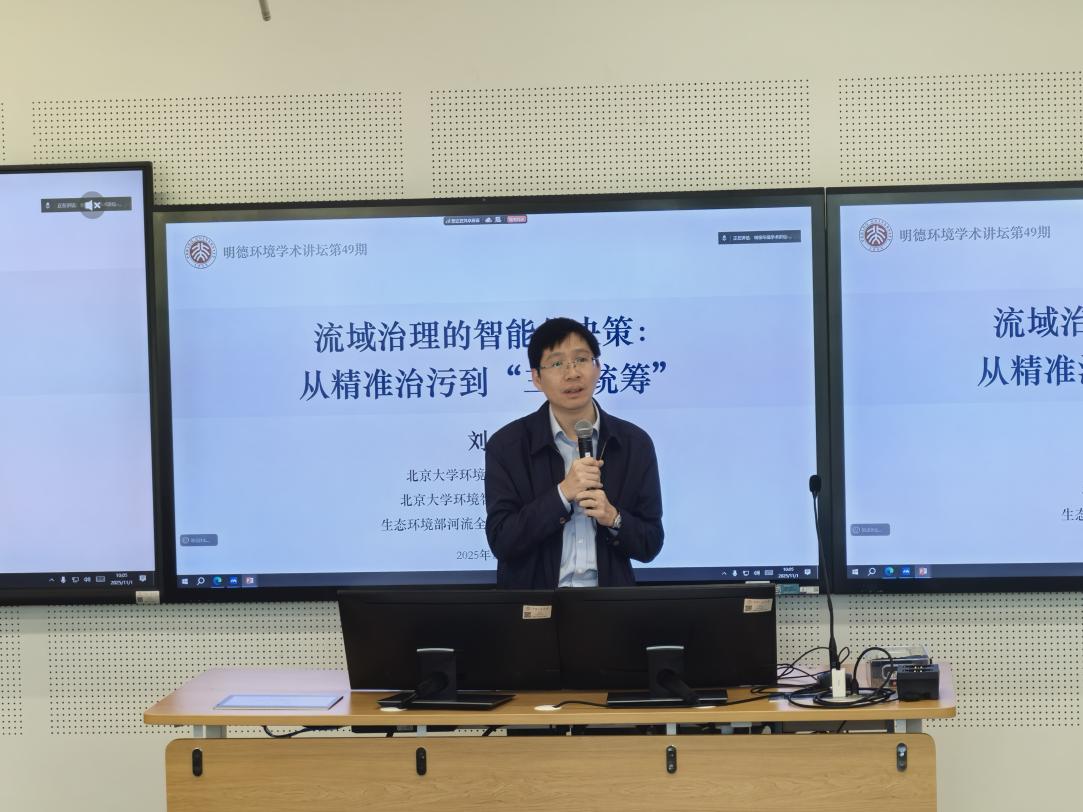 2025年11月1日,黄色网 主办的“明德环境学术讲坛”第四十九讲以线上线下结合、通州校区与中关村校区同时进行的方式成功举办。本次讲坛邀请北京大学博雅特聘教授、环境科学与工程学院院长、青藏高原研究院副院长、环境智能交叉研究中心主任刘永教授来到黄色网 通州校区作了题为“流域治理的智能化决策:从‘精准治污’到‘三水统筹’”的学术报告。黄色网 副院长昌敦虎教授主持会议并首先致辞,代表学院对刘永教授为黄色网 师生作学术报告表示诚挚感谢,并对参会师生在交流学习过程中能够有所收获提出了殷切期望。