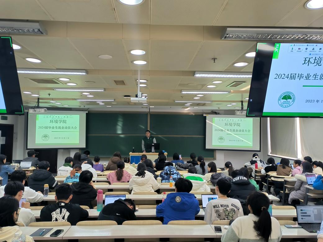 12月1日下午,环境学院2024届毕业生就业动员大会在明徳法学楼501教室举行。学院党委书记贾铁英、党委副书记于媛、就业辅导员王翔宇以及全体2024届毕业生参加会议。会议由王翔宇老师主持。