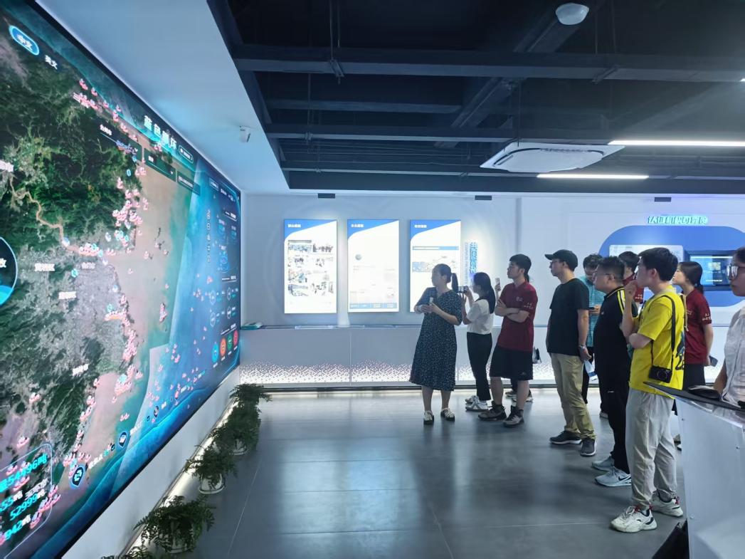 一路走来,大陈岛渚湾已跃身成为国家第三批美丽海湾优秀案例,以全新面貌展现于国家绿色低碳的发展蓝图中。在海洋蓝碳展厅,调研团师生与工作人员进行了深入交流,了解了大陈岛推进实现“双碳”目标的成果与经验。自2022年以来,大陈岛加快打造碳中和示范岛,不断加强海洋碳汇、陆地碳汇理论研究,大力推动低碳固体废物处置、全电交通等低碳生产生活方式落实,开展了柔性低频输电示范工程建设、“海岛碳汇+”公益诉讼等绿色实践措施,为美丽海湾建设提供了新思路、新方法、新模式。