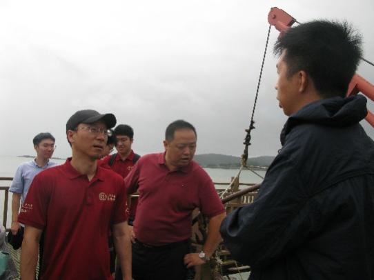 7月25日下午,调研团踏上了温州市洞头岛,探寻当地的海洋生态保护成果与浓厚的历史文化底蕴。首站,调研团抵达享有“气吞吴越三千里,名贯东南第一楼”美誉的望海楼。这座伫立在洞头区烟墩山上的楼阁,不仅是洞头历史文化的重要窗口,更是百岛旅游的标志性景观。作为中国历史文化名楼之一,望海楼内陈列着丰富的展品,生动展现了洞头区渔业捕捞工具的演变历程,同时全面展示了闽瓯风情与非遗成果,让调研团成员们对洞头的海洋文化有了更为直观和深入的认识。