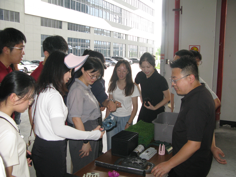 随后,调研团走进浙江通力新材料科技股份有限公司——一家以PCR(消费后再生)材料为核心的科技企业。在公司展厅,一件件“再生材料”产品刷新着调研团的认知:由回收塑料制成的垃圾桶、游戏机手柄、手机壳,甚至3D打印机组件、汽车零配件、电器配件……公司负责人指出,他们通过“睿三客信息化平台”实现从回收到生产的全流程管理,大部分生产过程中产生的废料也被自身回收利用,几乎无新增排废,仅产生少量漆渣。通力公司高效的改性设备、多品类的配件生产为再生塑料向终端产品的转换注入了强劲动能。