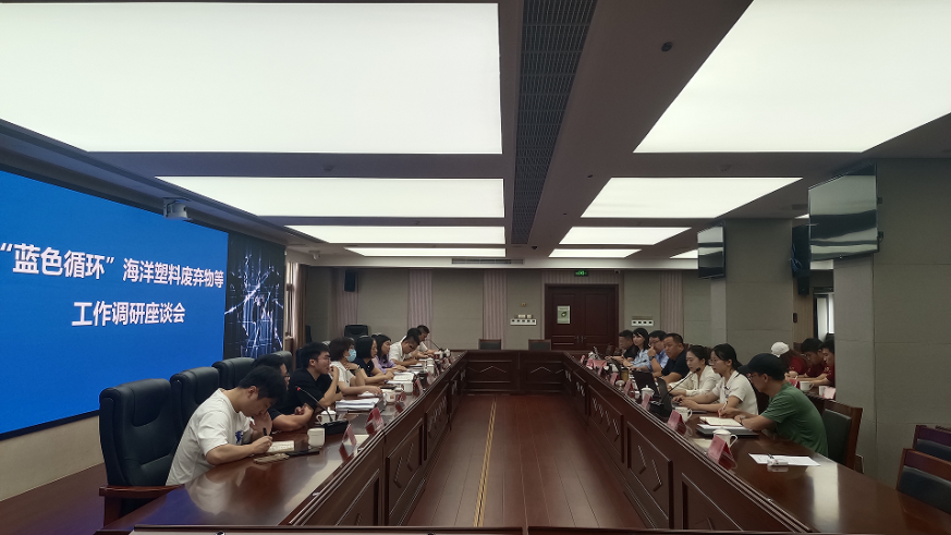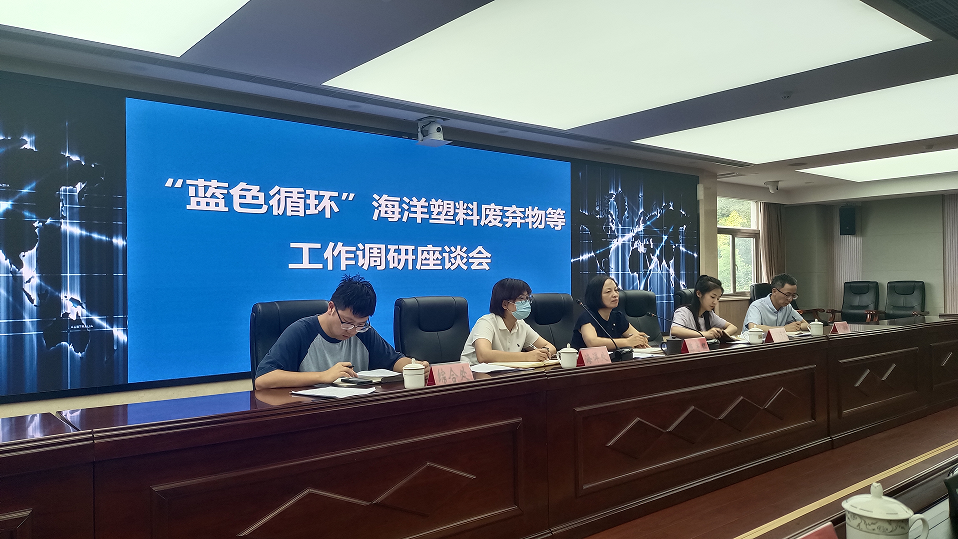 台州在全国率先构建“蓝色循环”体系,实现了海洋塑料废弃物“从海洋到货架”的全链条治理,打造了海洋垃圾治理的“台州样板”。2023年,浙江“蓝色循环”海洋塑料污染治理新模式获得联合国“地球卫士奖”。7月22日下午,调研团一行前往台州市生态环境局,与市局各处室负责人和企业负责人开展座谈会,深入了解台州市生态文明建设成果,及其发展进程中遇到的难点、堵点。