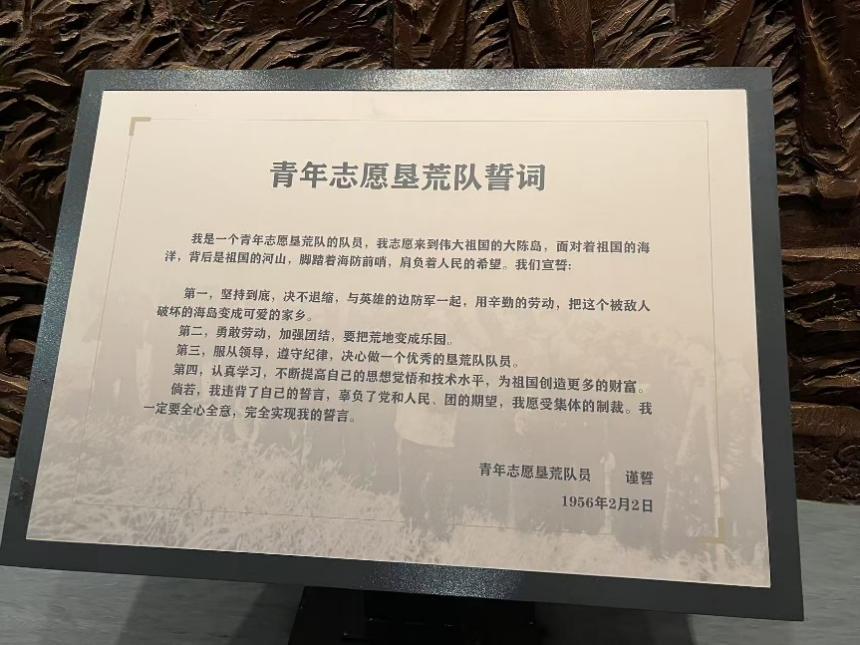 大陈岛的“五个29”让我印象深刻:距椒江区海门港29海里、由29个岛屿组成、1956年1月29日首批垦荒队员出发、1985年12月29日胡耀邦主席登岛慰问老垦荒队员、2006年8月29日时任浙江省委书记习近平前来考察。这一天,台风影响下的大陈岛风雨不定,我们常被突如其来的大雨浇透,但也正因如此,我越发感受到当年垦荒队员的不易与坚韧,越发体会到“艰苦创业、奋发图强、无私奉献、开拓创新”的垦荒精神——在困境中崛起,在开拓中前行。