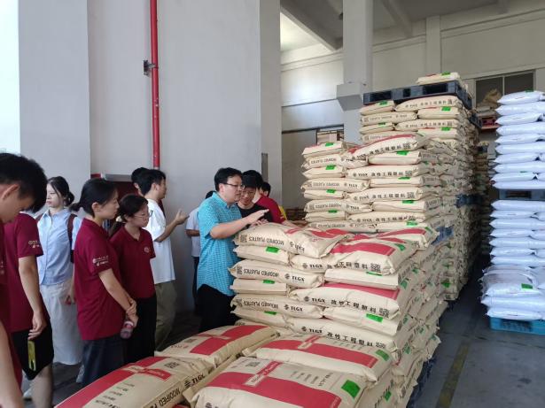随后,调研团一行来到沃府新材料有限公司(后简称“沃府”)。相比于其他回收企业,沃府企业规模大,产业链长、产品品类多样。从塑料回收、破碎、造粒、改性再到配件生产,沃府每个环节都可以利用自己的生产线完成。据工作人员介绍,沃府的原料来源已经覆盖浙江、福建、海南等多地,形成了成熟的收集链条;而在后端,其也凭借汽车配件、家电配件的定制化生产实现了回收塑料的高值利用。