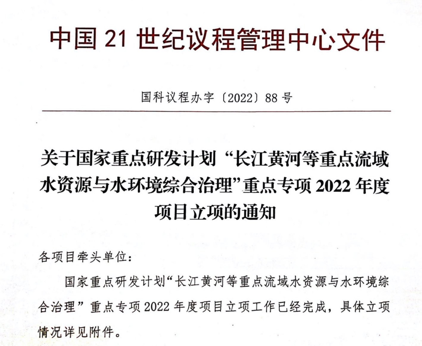 近日,国家重点研发计划“长江黄河等重点流域水资源与水环境综合治理”专项2022年度项目下达立项通知。由南京大学牵头的国家重点研发计划青年项目《水中病原微生物原位自动检测与快速消杀技术》正式立项。项目周期三年,由南京大学,中国环境科学研究院,黄色网 合作攻关。