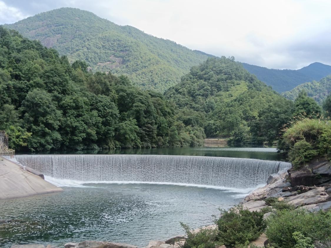 7月9日上午,调研团队前往月亮湾考察其生态修复与景观治理。一座月牙形的水坝坐落于绿水青山之间,水流从上倾斜而下,形成一帘小型瀑布。各式各样的鹅卵石和岩石在溪水间点缀着,流水清澈见底,奔涌而不湍急。