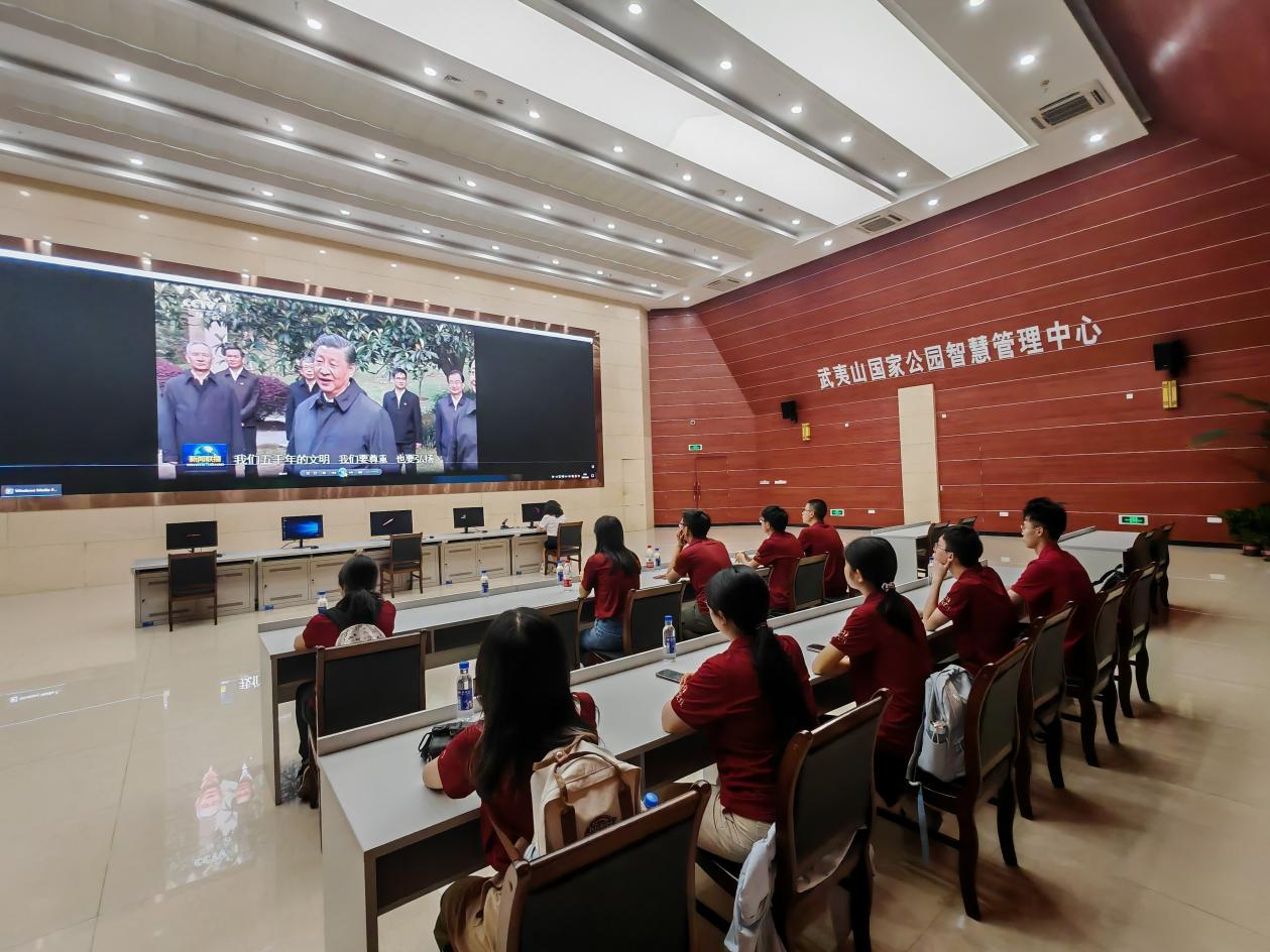 调研团师生在智慧管理中心学习习近平生态文明思想,深入调研武夷山生物多样性保护现状