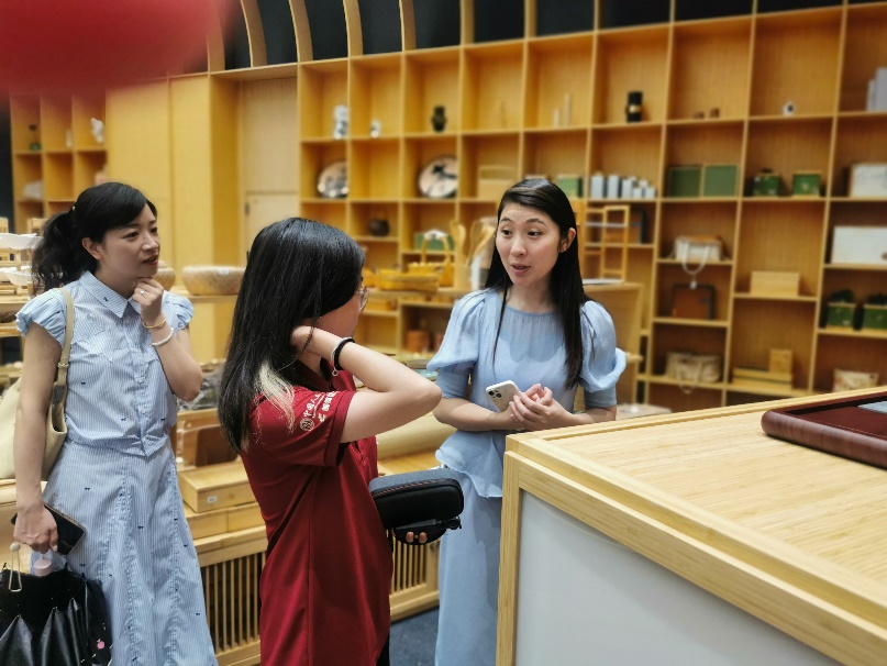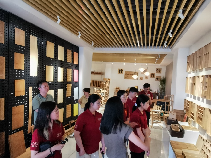 7月11日下午,调研团走进双羿竹木发展有限公司,在企业工作人员的带领下,深入探访这家以竹家居产品出口为主的企业。工作人员介绍,公司坚持“生态、绿色、环保”的可持续发展理念,将竹材创新应用于家居领域,开发出竹制桌椅、橱柜等系列产品,并详细展示了竹板材压制、碳化改色等核心工艺。师生们看到,企业积极践行全产业链提质降本增效,从原材料采购到终端产品制造均严格遵循环保标准,与中央美院、宜家等开展深度合作,凭借环保设计和优良品质成功打入国际市场,占领价值链高端。调研中,师生们深刻体会到:在全球绿色消费浪潮下,中国竹企正以认证体系接轨国际、以设计赋能产品、以全链管控确保可持续,让传统竹艺焕发新生,依靠标准引领设计赋能、市场认可为生态产品价值实现探索出一条国际化路径。