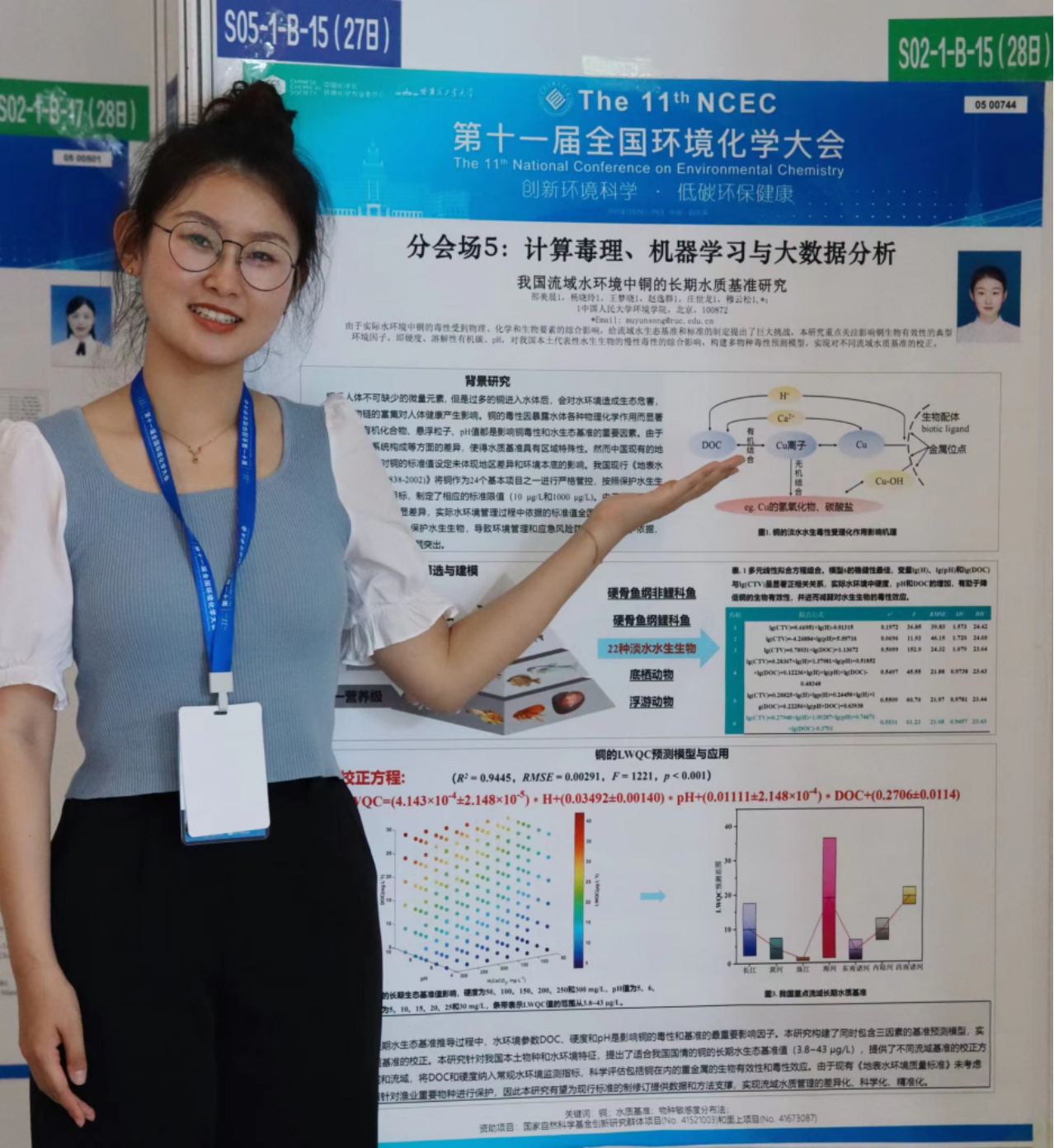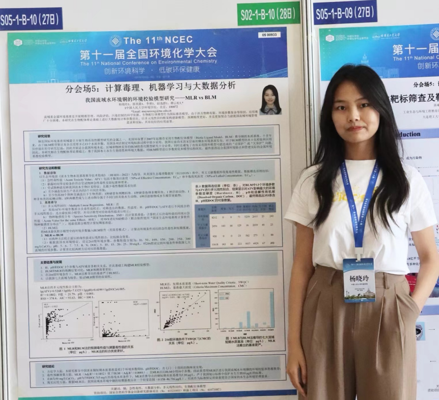 杨晓玲同学的墙报主题为“我国流域水环境铜的环境校验模型研究——MLR vs BLM”。