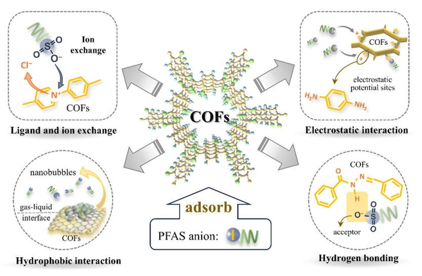 近年来,全氟和多氟烷基物质(PFAS)作为一种新污染物在水体中被广泛检出,对环境和人类健康构成威胁。结晶多孔材料金属有机框架(MOFs)和共价有机框架(COFs)由于其比表面积大、孔径可调节、孔壁可修饰等特性在吸附去除PFAS污染物方面表现出巨大的应用前景。刘政琰等同学撰写的综述文章详细梳理了MOFs和COFs的结构特性、合成及改性方法,系统地总结了这两种材料在PFAS吸附中的应用,并进行了深入的比较分析。这篇综述及时总结了新材料(MOFs和COFs)对新污染物(PFAS)的最新研究进展,为该领域的研究者提供了宝贵的参考,为新污染物治理提供了新的思路。