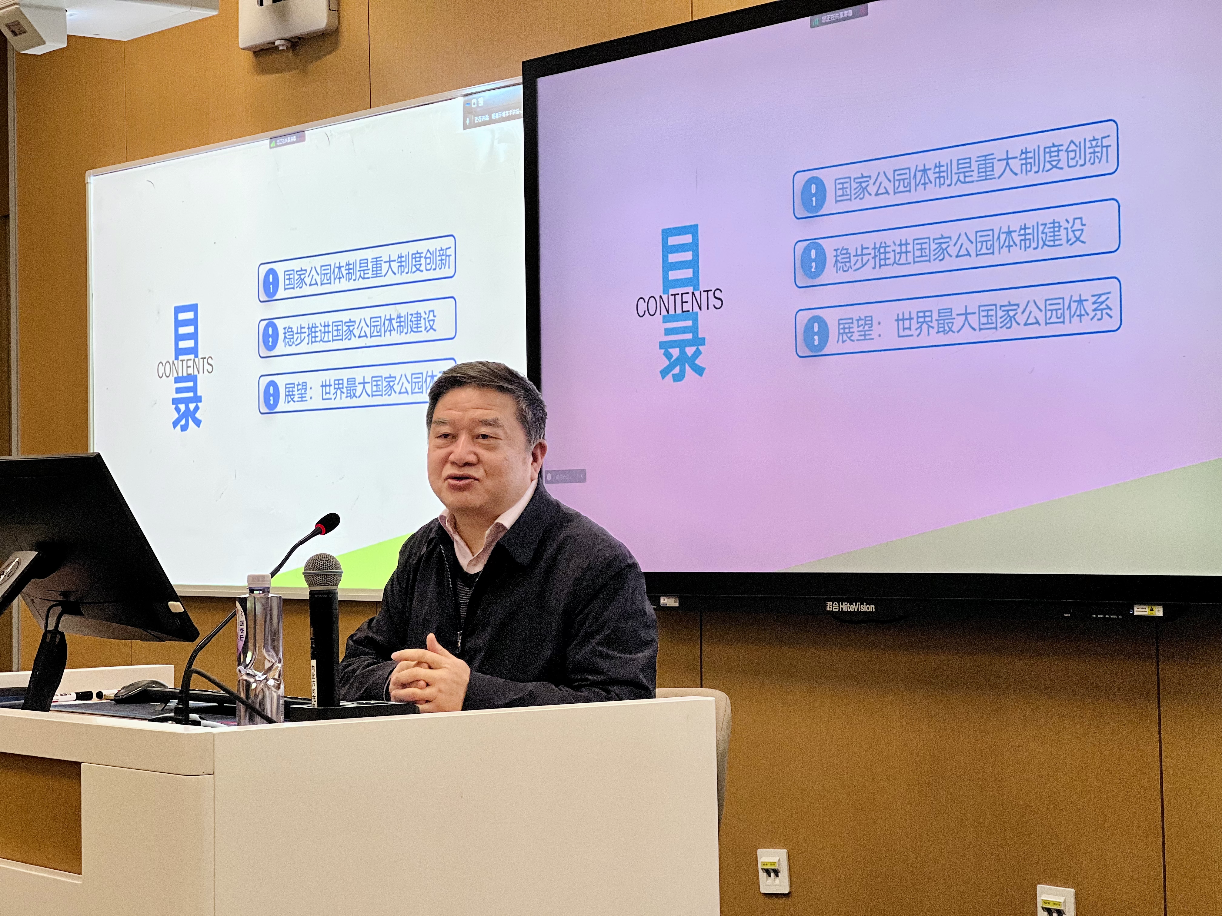 首先,唐小平院长以国际视角下的国家公园建设为出发点,指出在IUCN的框架下,国家公园应具有三方面特征:第一,应包括主要自然区域的典型风貌以及生态、环境或者风景特征。第二,应具有足够大的面积以及相应的生态质量。第三,生物多样性的构成、结构和功能,在很大程度上应保有“自然”状态,或者具有恢复到这种状态的潜力。