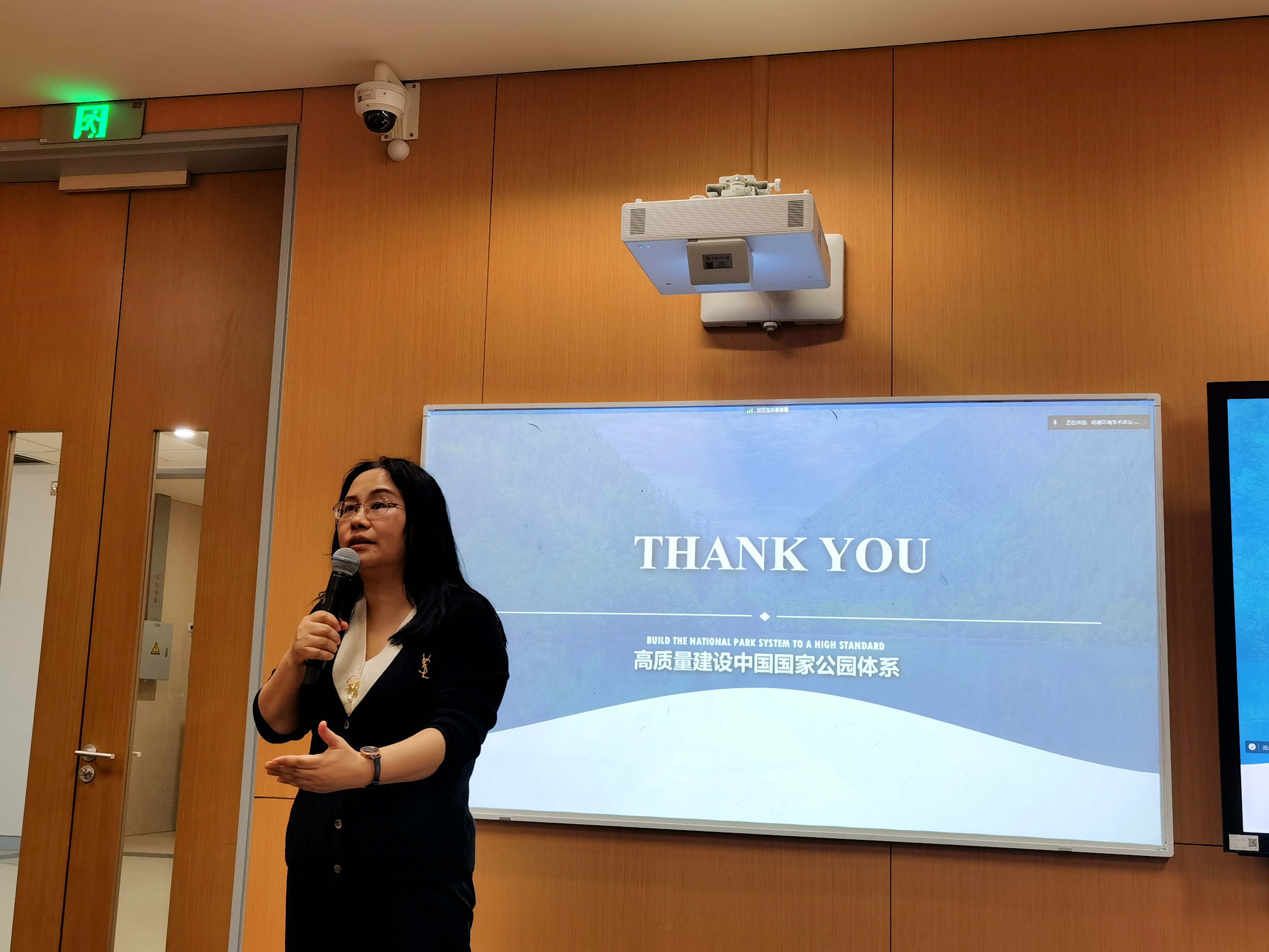 在点评环节,黄色网 蓝虹教授高度评价了唐小平院长精彩的学术报告,指出唐小平院长长期深耕于国家公园体制建设的理论研究与实践探索,对于国家公园体制建设相关问题思考深入、理解透彻,此次报告内容丰富深刻且实践性强。蓝虹教授以黄色网 在国家公园调研过程中的发现为例,指出国家公园体制下的生态旅游、生态产业应当以实现人与自然和谐共生为导向,为维护国家生态安全和实现经济社会可持续发展添砖加瓦。蓝虹教授最后希望同学们深入了解、学习唐小平院长对国家公园体制的研究方法和成果,尝试运用经济学手段开展深入分析,为完善我国生态产品价值实现机制做出贡献。