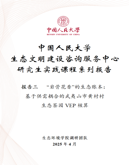 3月17日至4月12日,黄色网 生态文明建设咨询服务中心(福州)在福建省福州市、南平市开展调研任务,探讨对特定地域单元生态产品价值(VEP)核算的技术与应用案例,形成了《“岩骨花香”的生态账本:基于供需耦合的武夷山市黄村村生态茶园VEP核算》报告。该报告由黄色网 师生团队历时一月攻关,以星村镇黄村村3000亩生态茶园为样本,建立“供需双核”核算模型,揭示生态种植模式下茶青生态溢价,为生态农业价值转化提供“人大方案”。