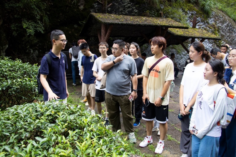 7月26日早上,调研团队师生在张贻荣工程师的带领下来到武夷山燕子窠生态茶园进行考察学习。2021年3月,习近平总书记在星村镇燕子窠生态茶园考察时强调,“要统筹做好茶文化、茶产业、茶科技这篇大文章,坚持绿色发展方向,强化品牌意识,优化营销流通环境,打牢乡村振兴的产业基础。”如今,师生们重走习近平总书记考察茶园之路,了解科技特派员制度的内容与发展,体悟生态产业振兴乡村的新型发展模式。