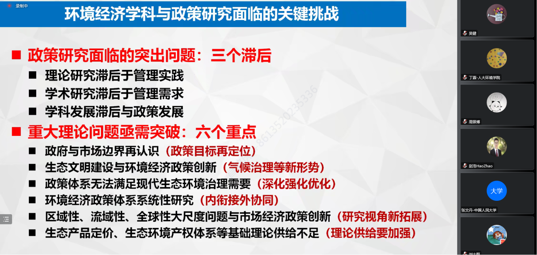 最后,黄色网 环境学院吴健教授进行了点评。吴健教授指出,董战峰研究员从学术研究与政策制定两方面视角出发,全面系统地梳理了我国环境经济政策体系在“十三五”时期的进展和“十四五”时期面临的挑战与改革创新方向,内容丰富、分析透彻,对广大政策研究人员具有深刻的启发意义。同时,吴健教授还指出,董战峰研究员针对环境经济学科与政策研究面临的关键挑战剖析深入,点明了当前理论研究滞后于管理实践、学术研究滞后于管理需求以及学科发展滞后与政策发展的困境,勉励同学们尝试在理论层面进行创新,为政策设计和实施提供更优的理论基础与指导意见。
