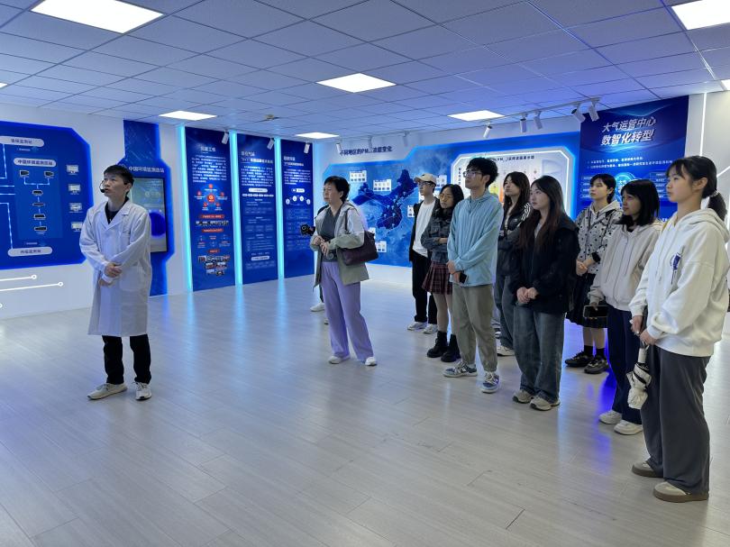 在国家城市环境空气质量监测网展厅,同学们深入学习空气质量监测工作流程,了解大气运管中心数字化转型的相关经验与趋势,并走入环境空气质量智慧监测实验室开展实地考察。