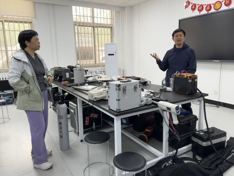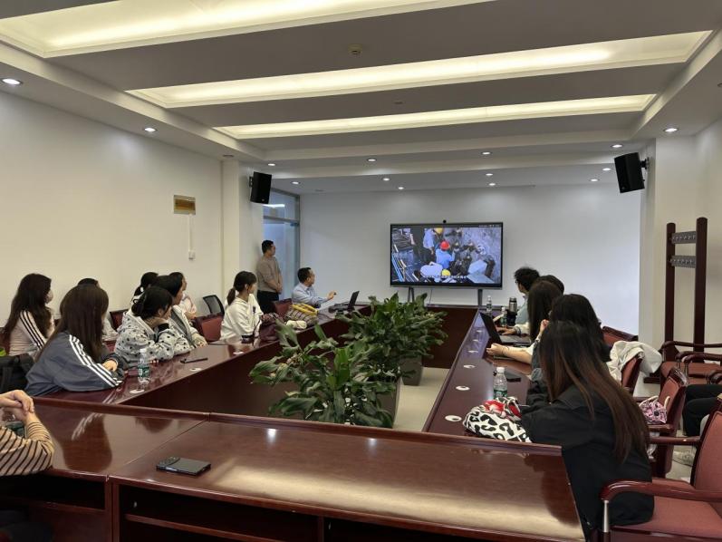 在会议室讨论环节,中国环境监测总站污染源室主任王军霞系统梳理了我国环境监测总体情况、中国环境监测总站的工作职责及监测范围。中国环境监测总站污染源室高级工程师刘常永展示了生态环境监测虚拟仿真(VR)模拟操作系统,模拟外出开展环境监测作业实际场景并与师生开展交流。