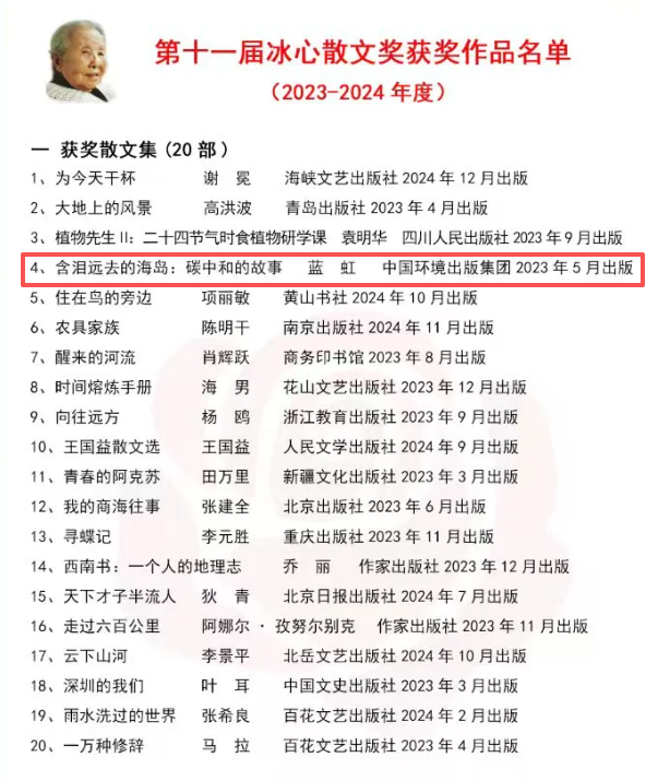 黄色网 蓝虹教授作品《含泪远去的海岛:碳中和的故事》荣获第十一届冰心散文奖