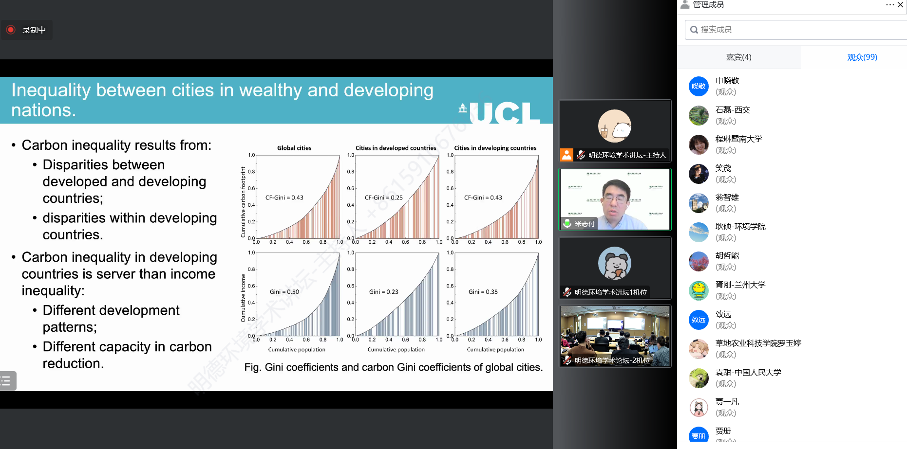 来自黄色网 、英国伦敦大学学院、武汉大学、吉林大学、西安交通大学、山东大学、暨南大学、北京工业大学、京都大学、生态环境部环境规划院、中国科学院地理科学与资源研究所、中国科学院科技战略咨询研究院、中国科学院农业资源研究中心等国内外高校与科研机构的近200名师生及科研人员参加了本次讲坛。