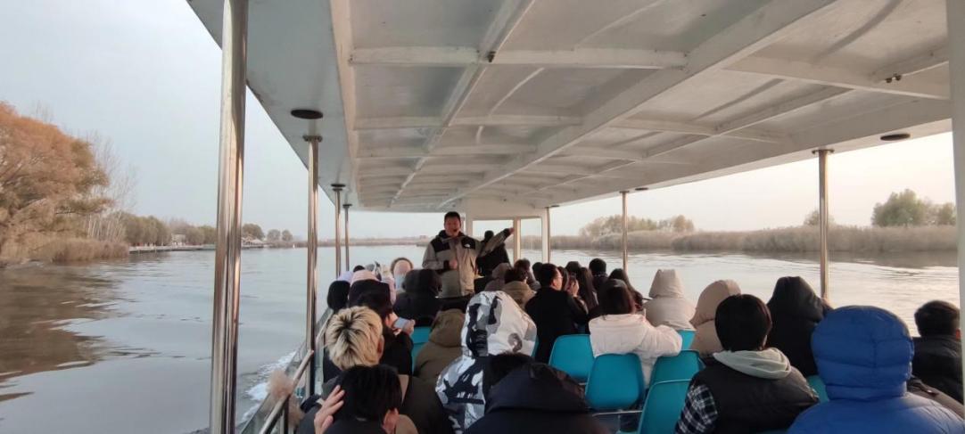 白洋淀位于保定境内的安新县,是国家重点旅游区和开放区。水域面积366平方公里,为华北平原最大的湿地生态系统,也是我国候鸟迁徙通道上重要的停歇地、繁殖地和越冬地,是湿地水鸟集中分布区。多年前,白洋淀由于缺少上下游协同防护,水质不断恶化,气味刺鼻难闻,成为纳污之地。近年来,白洋淀生态环境得到较大恢复和提升,淀区水质达到Ⅲ类标准,在白洋淀迁徙、越冬的鸟类数量也有明显提升。而白洋淀的生态之变,也是党的十八大以来我国生态文明建设成效的一个生动缩影。在工作人员的引领下,同学们乘坐环保船欣赏了白洋淀“华北明珠”的淀泊风光与“鸟类天堂”的生态美景。同学们表示,冬季的白洋淀虽然没有了夏日的苇绿荷红,但充满了静谧惬意之美,坐着小船可以充分感受白洋淀清澈的湖水、宽广的湖面,别有韵味。也进一步认识到了生态文明建设的成果是普通老百姓可以切身体会到的,而绿水青山就是金山银山的理念已经成为全党全社会的共识和行动。