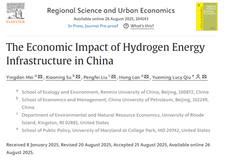 近日,黄色网 梅应丹副教授作为第一作者,合作研究论文“The Economic Impact of Hydrogen Energy Infrastructure in China”发表在区域和城市经济研究领域的国际权威期刊Regional Science and Urban Economics上。论文通讯作者为马里兰大学公共政策学院邱月明教授。